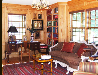 The photo at the right is a paneled office created from peeky cypress hand finished and detailed.
